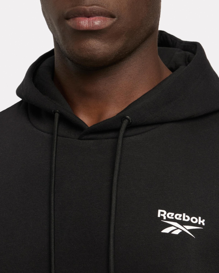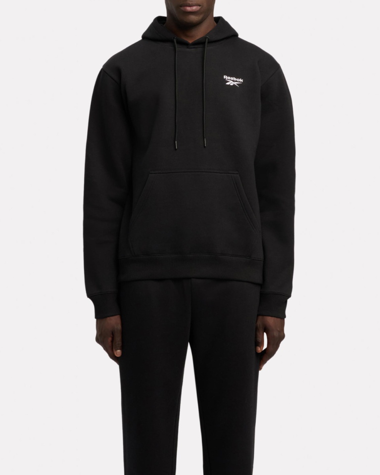 Opplev kombinasjonen av komfort og stil med Reebok ID Small Logo Fleece Hoodie. Det myke fleecematerialet gir en behagelig og lun følelse hele dagen, mens det minimalistiske designet med en subtil Reebok-logodetalj på brystet tilfører et sporty og moderne uttrykk.