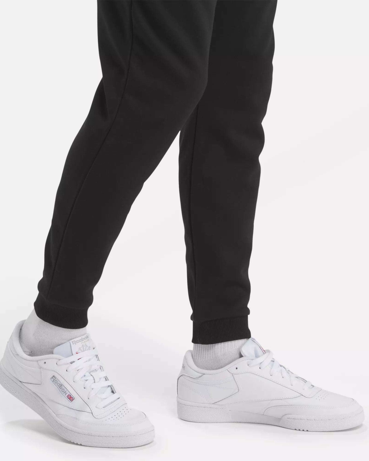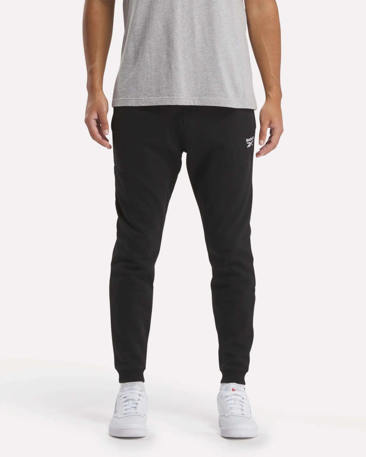 Hviletid kan være når som helst i disse joggebuksene for menn, laget av myk fleece som holder seg varm og komfortabel uansett hvordan du beveger deg. Elastiske mansjetter gir en smalere silhuett og lar deg vise frem dagens sko. Den fleksible linningen er laget for komfort med en snor som sørger for at buksen sitter godt. Et diskret logobroderi setter prikken over i-en med et hint av Reebok-holdning.