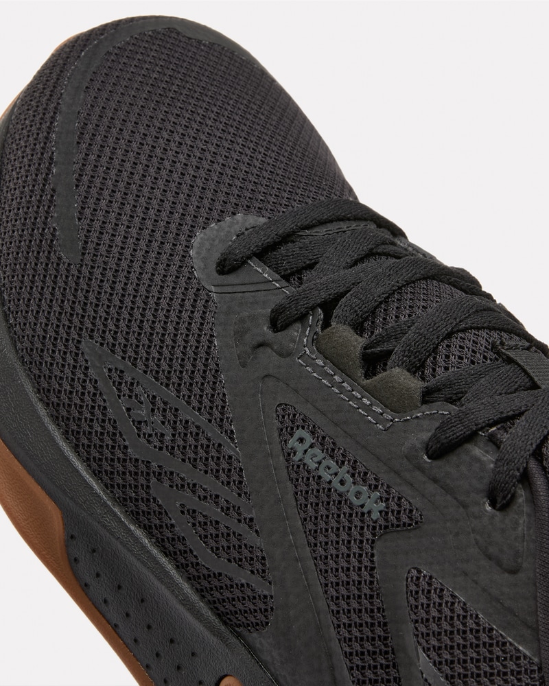 Reebok NanoFlex TR 3 er en allsidig treningssko utviklet for varierte økter på treningssenteret. Den fleksible NanoFlex-overdelen i pustende mesh gir en lett og komfortabel passform som følger fotens bevegelser, samtidig som strategiske forsterkninger sørger for stabil støtte under intense øvelser. Skoen er perfekt for funksjonell trening, HIIT, sirkeltrening og lettere styrkeøkter, der du trenger både bevegelighet og kontroll. Den stabile konstruksjonen gir god bakkekontakt ved løft, mens den dempende mellomsålen sørger for komfort gjennom hele økten – fra oppvarming til siste repetisjon.