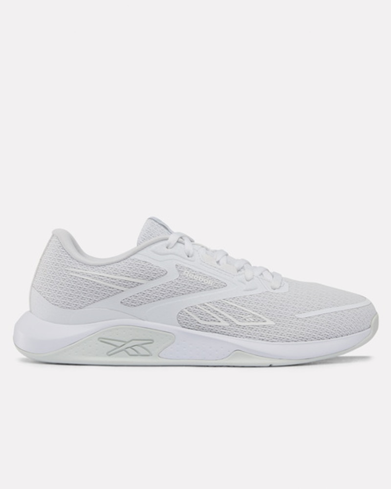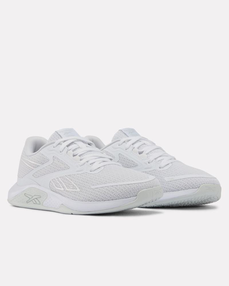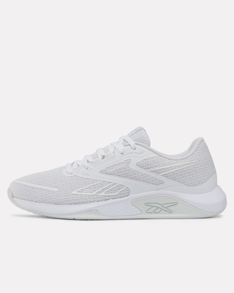 Reebok NanoFlex TR 3 er en allsidig treningssko utviklet for varierte økter på treningssenteret. Den fleksible NanoFlex-overdelen i pustende mesh gir en lett og komfortabel passform som følger fotens bevegelser, samtidig som strategiske forsterkninger sørger for stabil støtte under intense øvelser. Skoen er perfekt for funksjonell trening, HIIT, sirkeltrening og lettere styrkeøkter, der du trenger både bevegelighet og kontroll. Den stabile konstruksjonen gir god bakkekontakt ved løft, mens den dempende mellomsålen sørger for komfort gjennom hele økten – fra oppvarming til siste repetisjon.