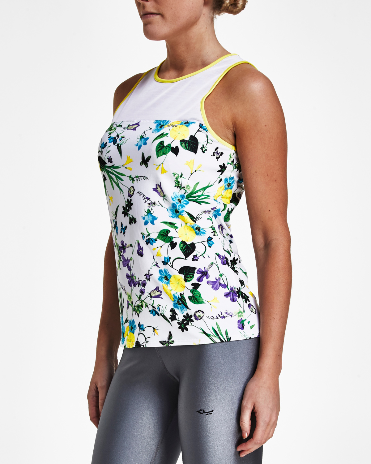 Hannah Run Singlet er laget av gjenvunnet materiale som leder bort fukt, og er utstyrt med meshdetaljer for ekstra ventilasjon.