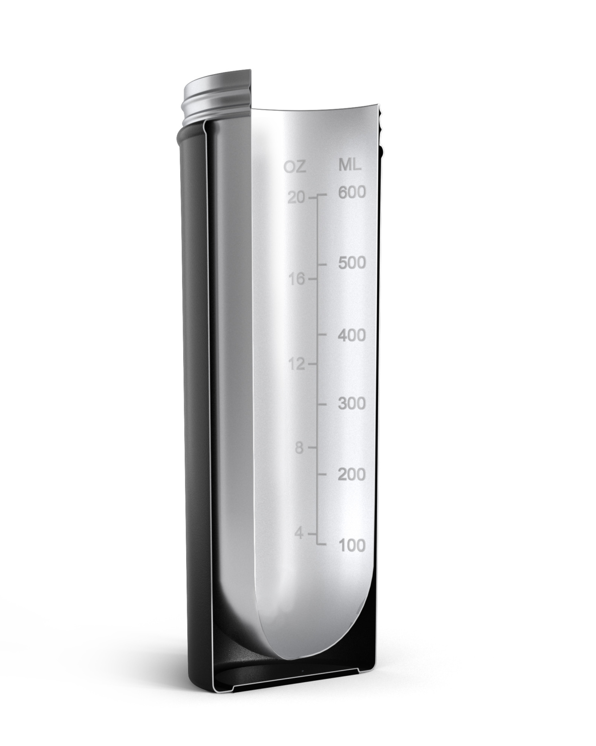 Inni flasken finner du volummerking i både milliliter og unser, samt en buet bunn som hindrer at proteinpulver fester seg – og gjør rengjøringen enkel.