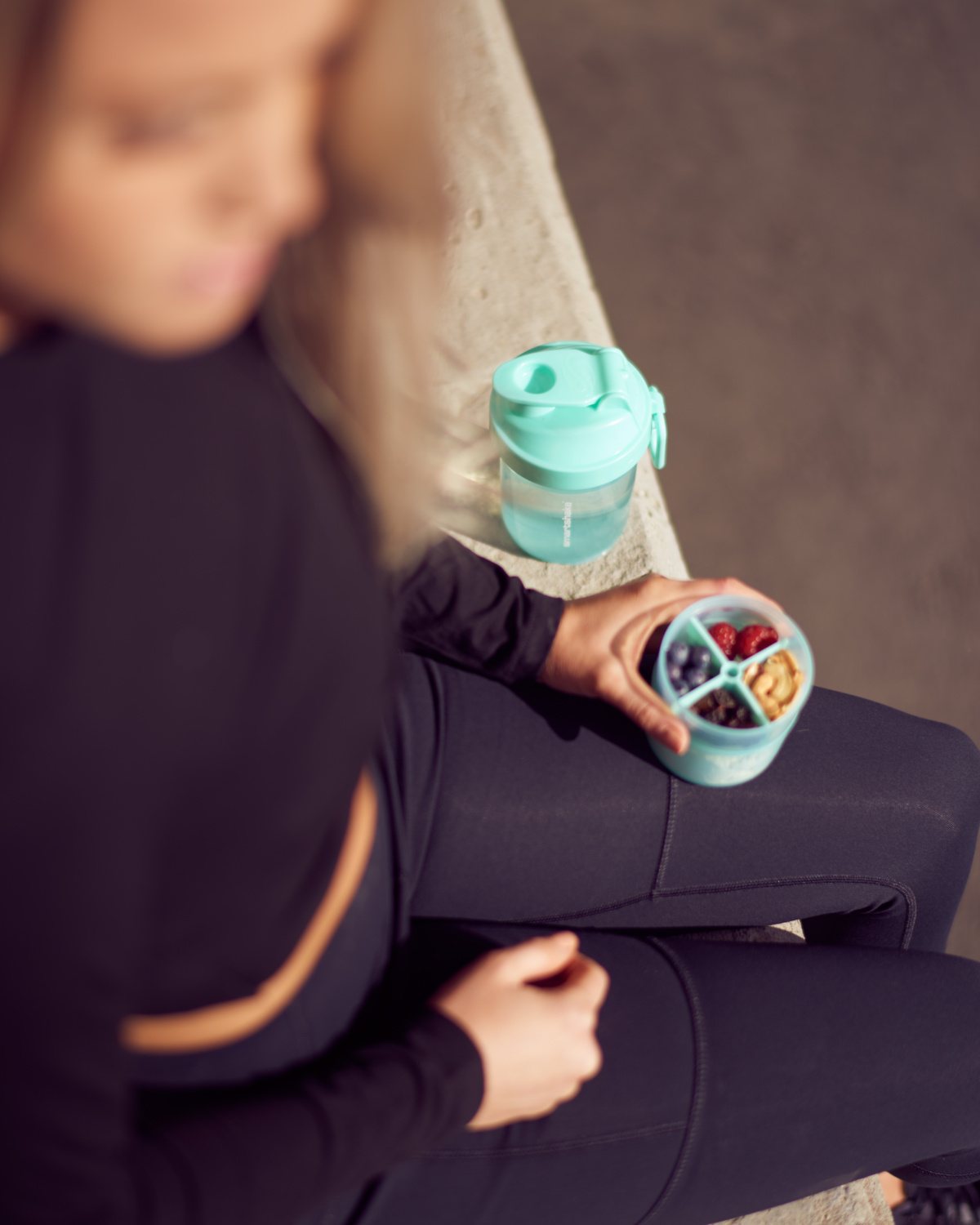 Med Original2Go får du to avtakbare oppbevaringsbeholdere som festes under shakeren – perfekt for proteinpulver, kosttilskudd, nøkler eller snacks.