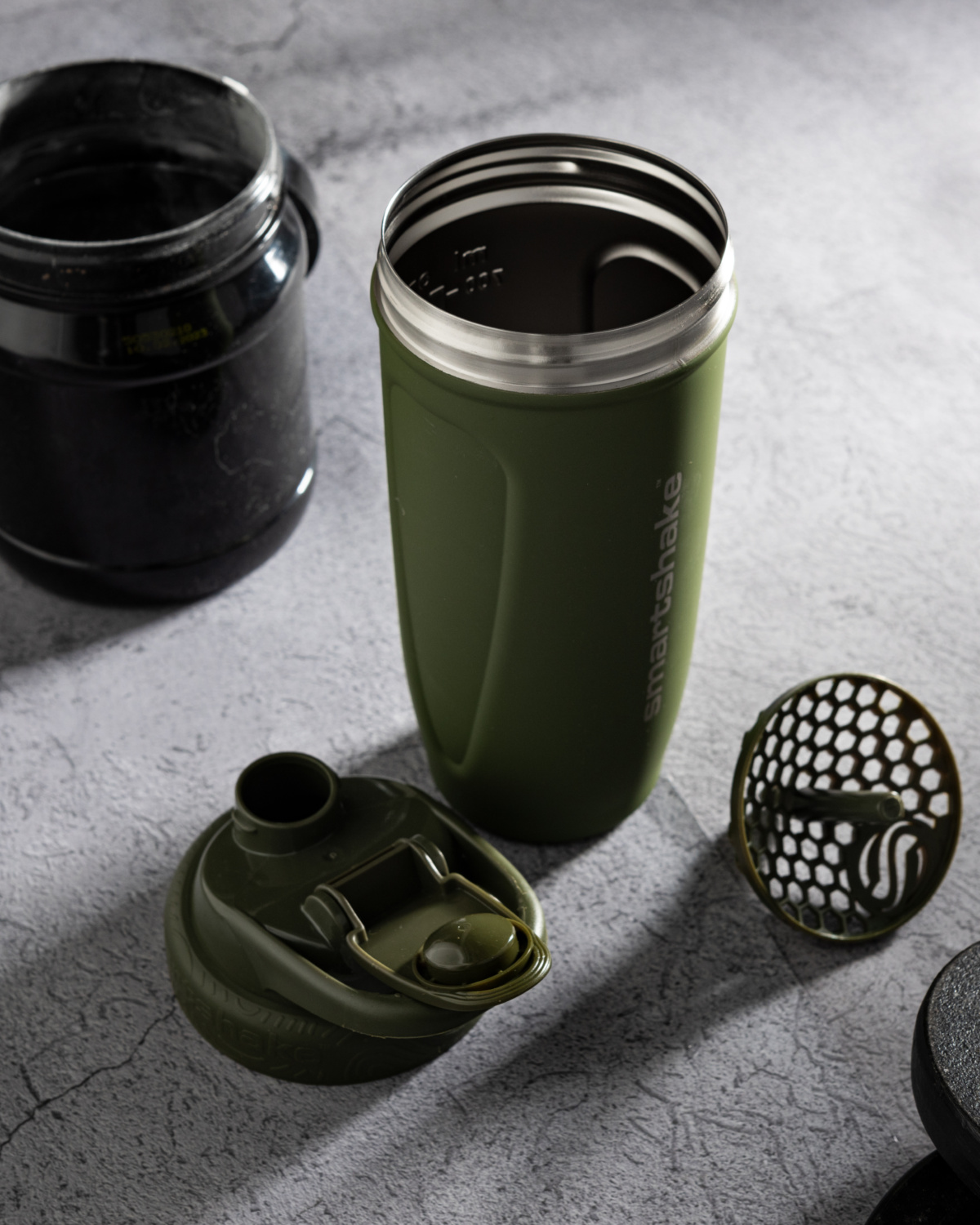 Ingen grunn til bekymring med Reforce Stainless Steel shaker bottle. Den robuste matgodkjente stålen er både ekstremt slitesterk og hygienisk. Lett i vekt, men laget for å vare. Det lekkasjesikre lokket og det myke bærehåndtaket gjør den til en naturlig del av en sunn livsstil.