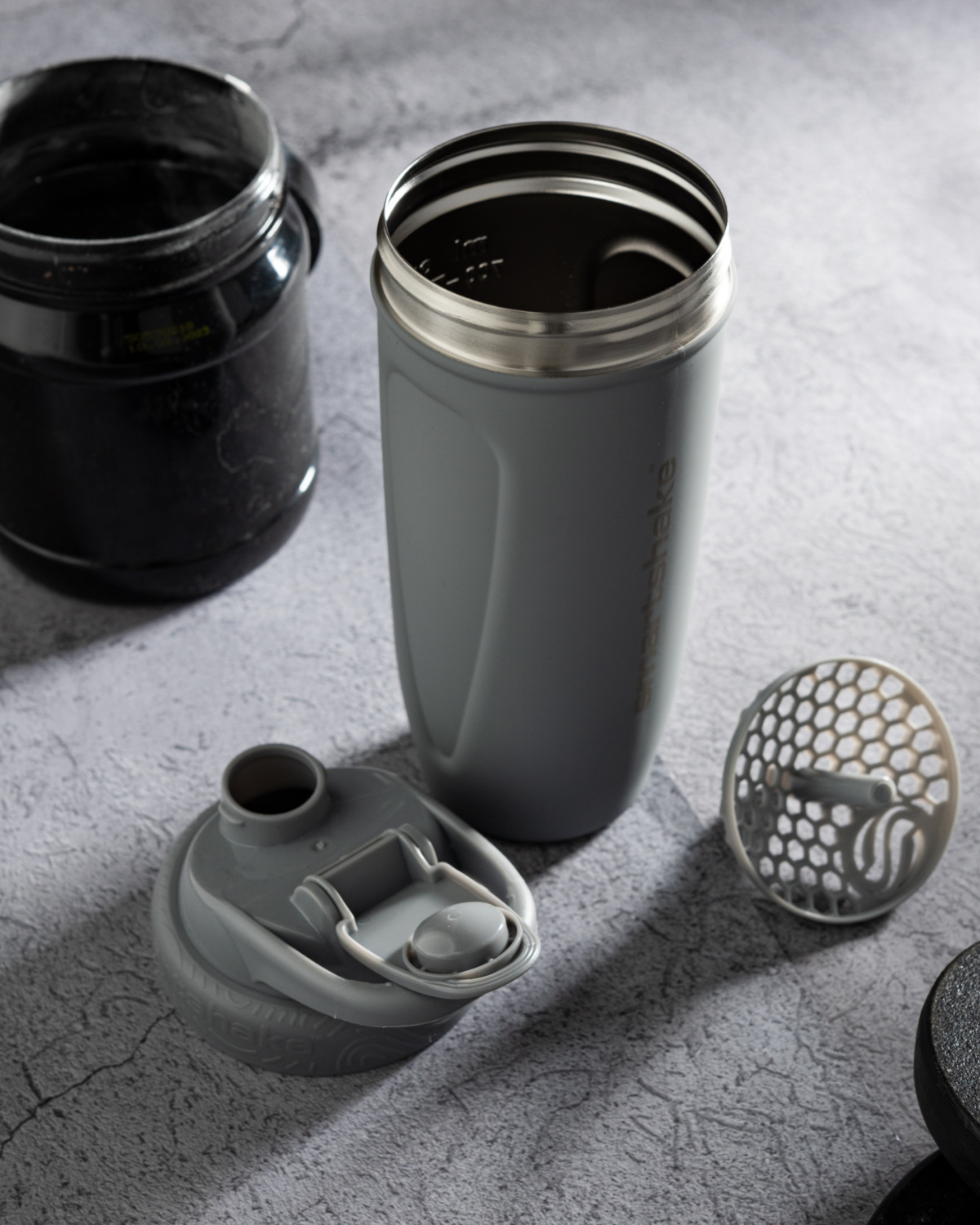 Ingen grunn til bekymring med Reforce Stainless Steel shaker bottle. Den robuste matgodkjente stålen er både ekstremt slitesterk og hygienisk. Lett i vekt, men laget for å vare. Det lekkasjesikre lokket og det myke bærehåndtaket gjør den til en naturlig del av en sunn livsstil.