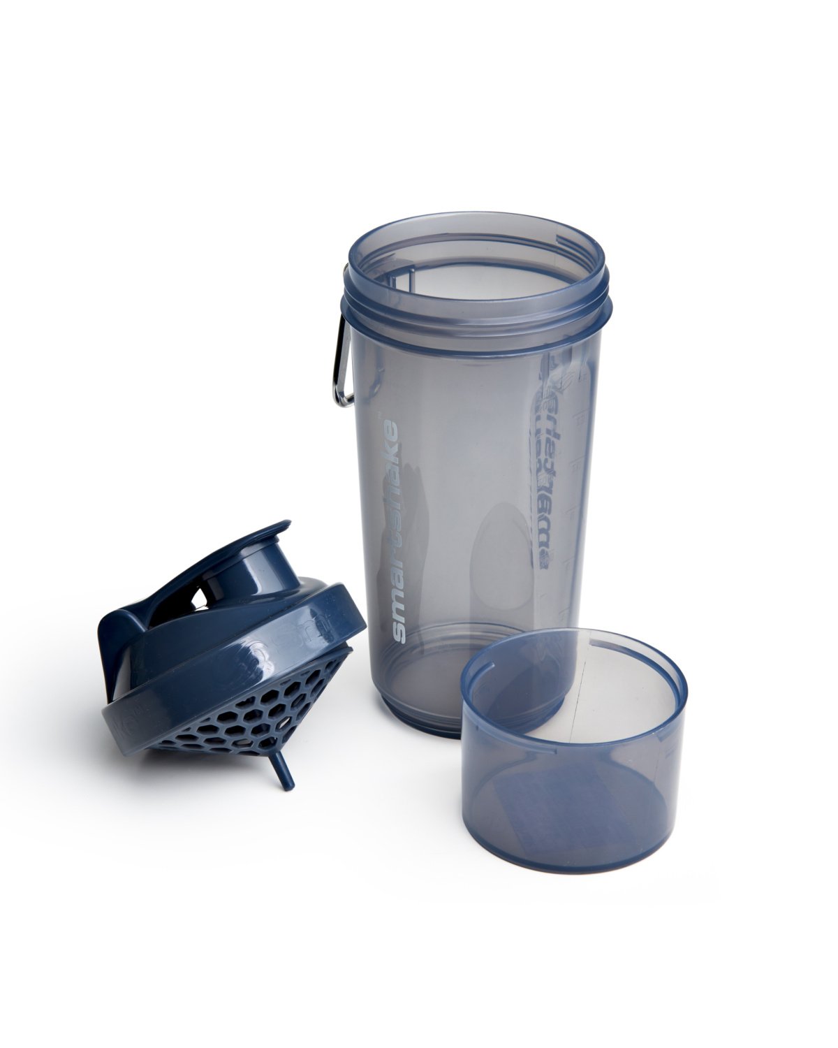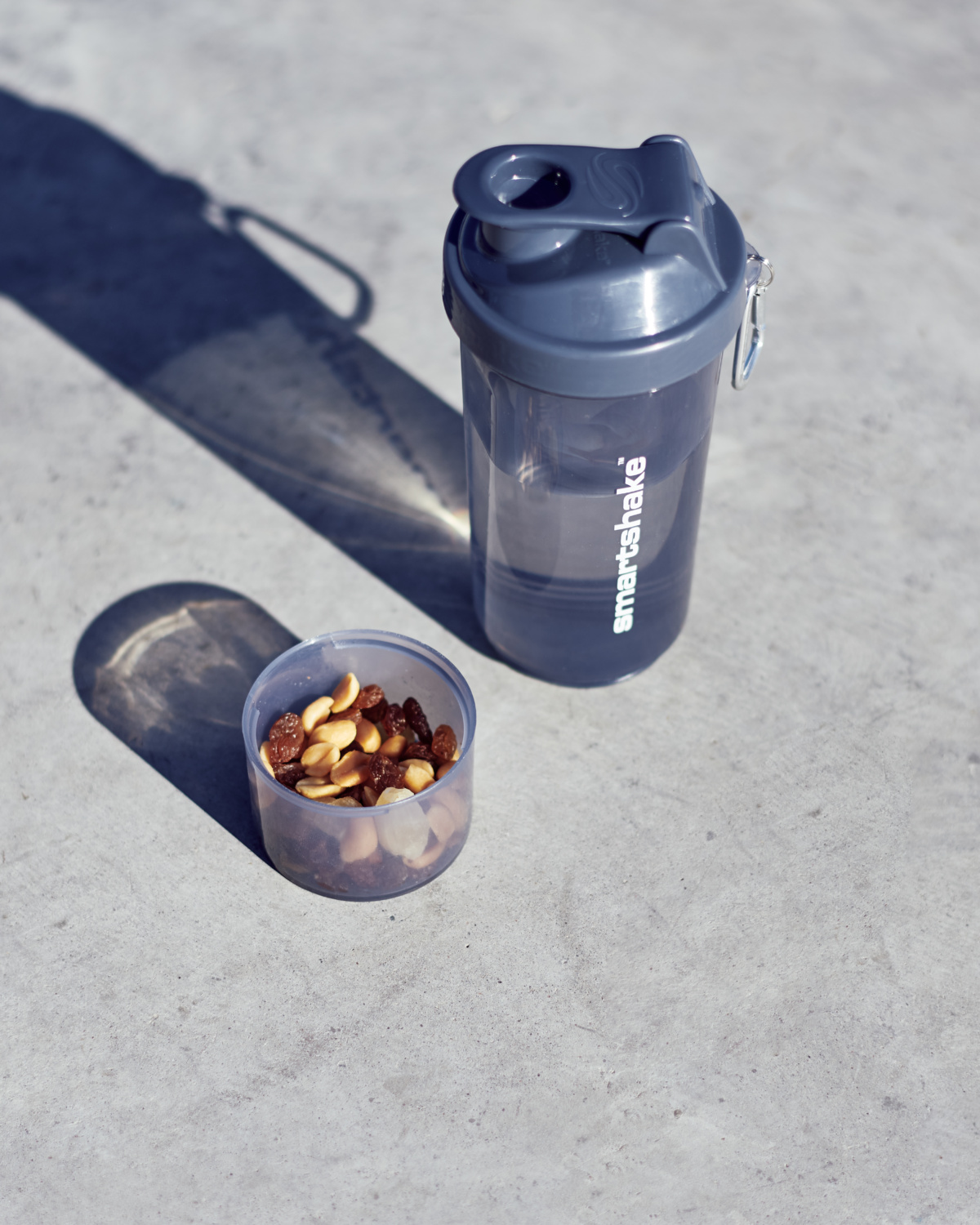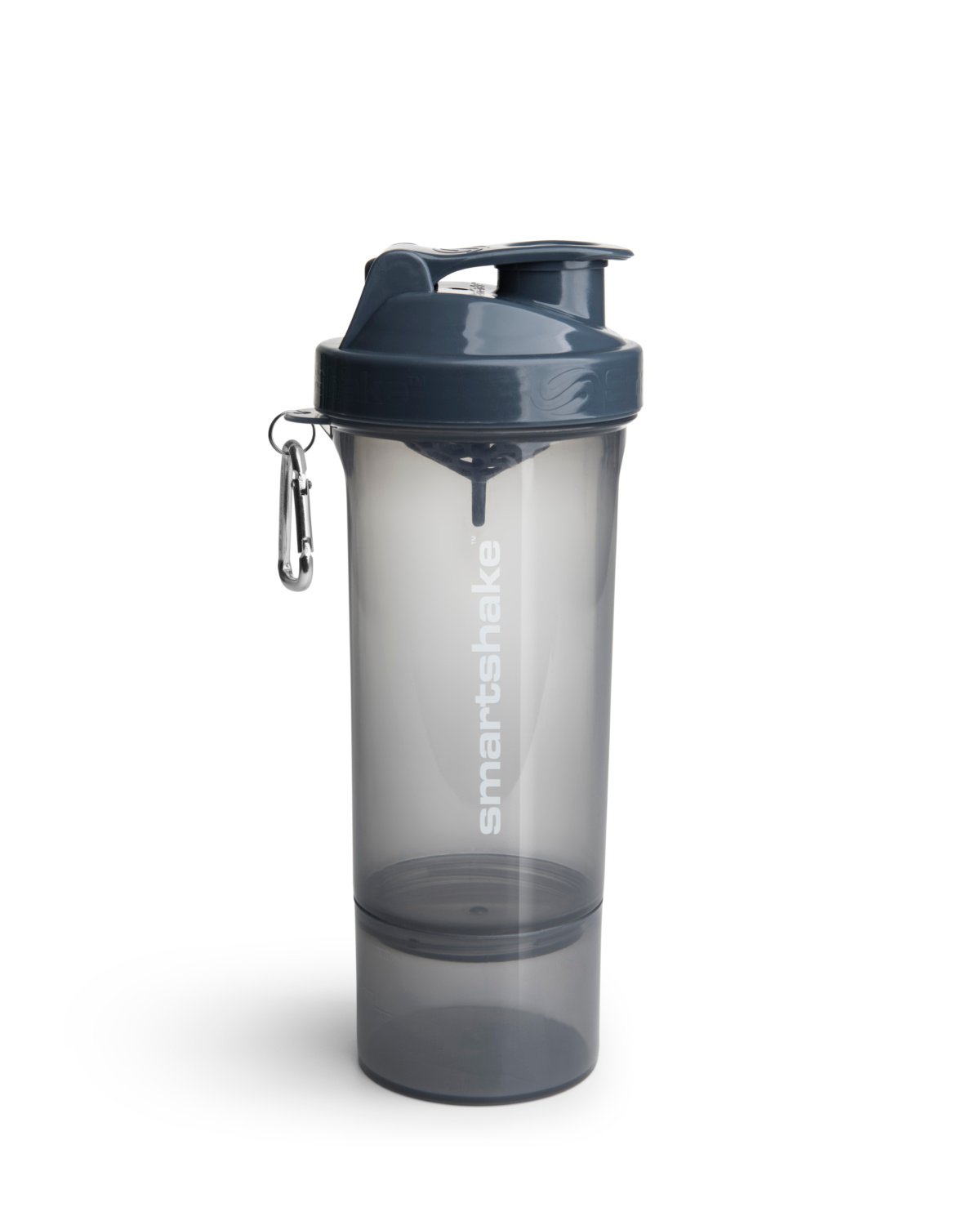 SmartShake Slim rommer 500 ml væske opp til lokket, og tilbyr et monterbart ekstra beholder for sikker oppbevaring av 1 dl ønsket kosttilskudd.