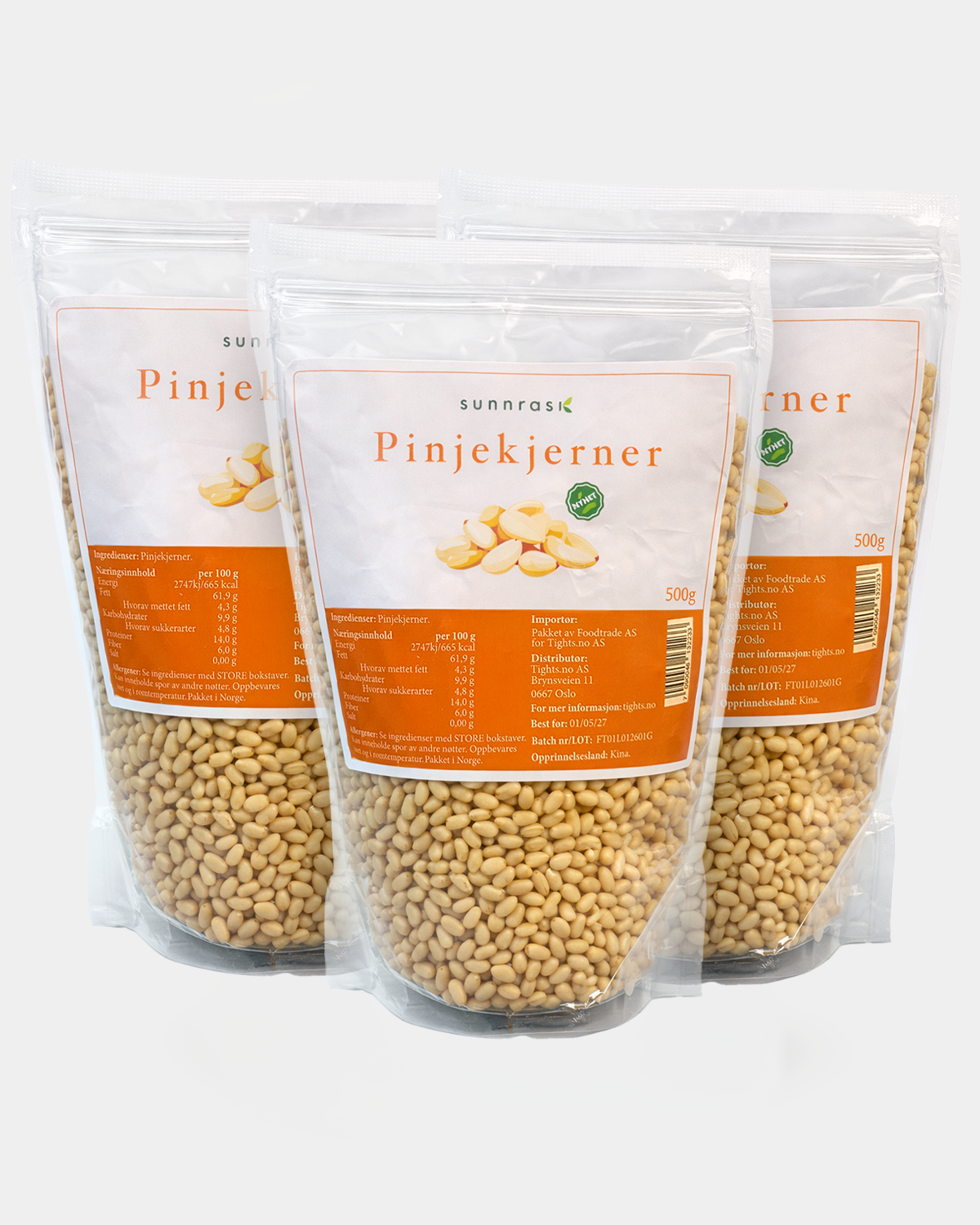 Ingredienser: 100 % pinjekjerner.