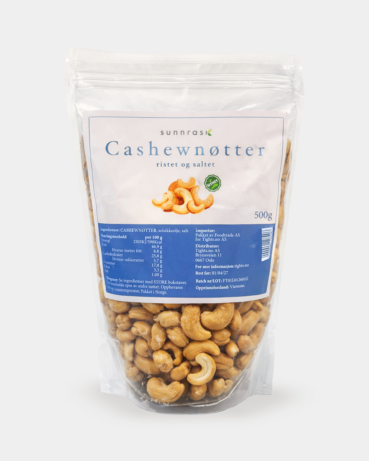 Ingredienser: Cashewnøtter, solsikkeolje, salt