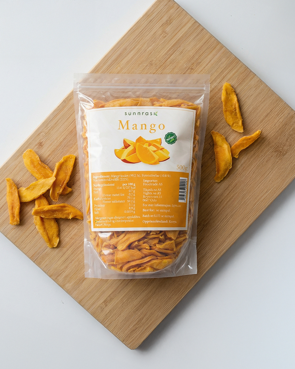 • Ikke tilsatt sukker • 99,2 % mango • Naturlig rik på fiber • Fettfattig • Praktisk 500 g zip-pose