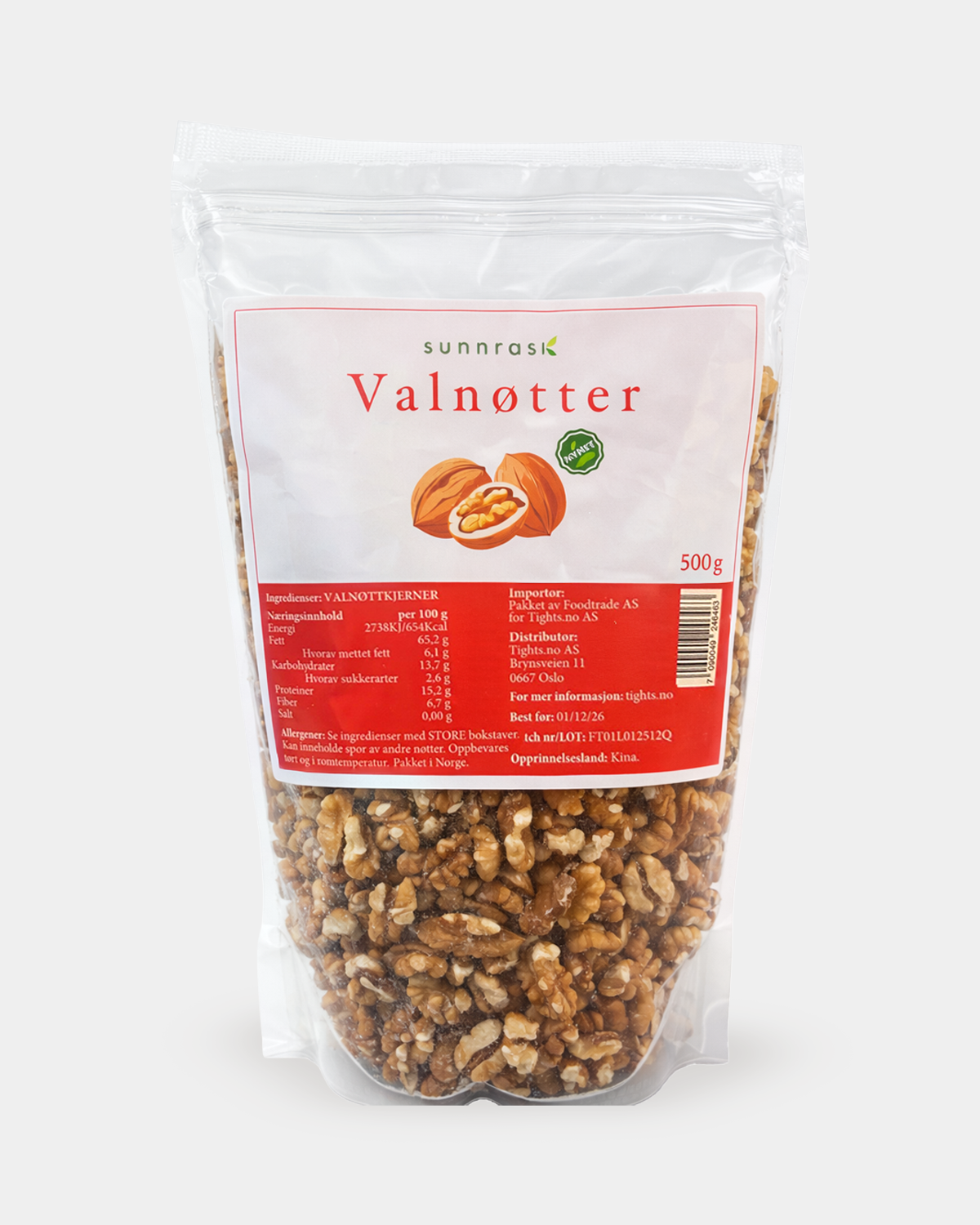Ingredienser: Valnøtter (kjerner).