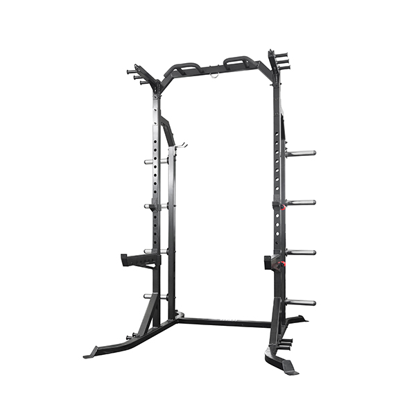 Dette Half Rack er ideelt til områder med begrænset plads. En alsidig station til squat, bænkpressøvelser og med Pull Up Bar.