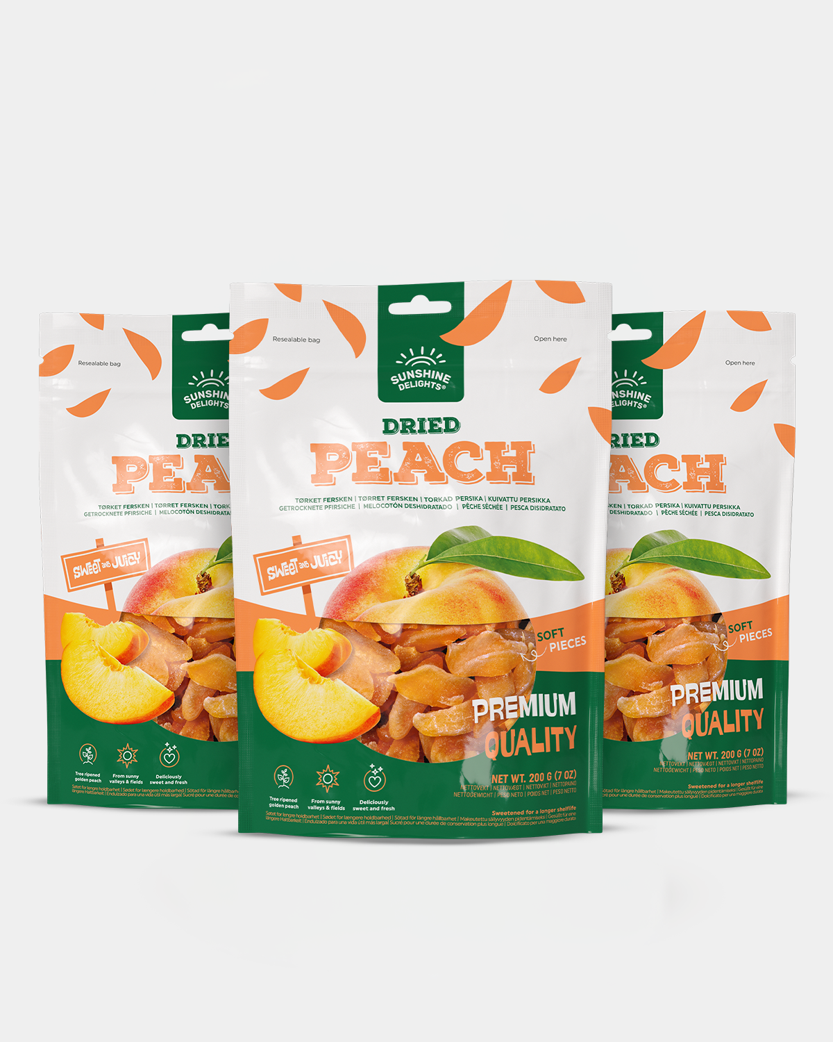 Tørket fersken fra Sunshine Delights – smakfulle snacks for enhver anledning