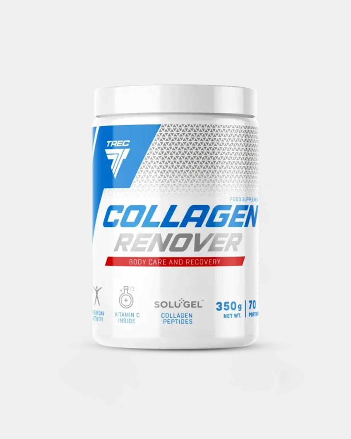 Kosttilskudd med søtningsmiddel COLLAGEN RENOVER – Kosttilskudd Hydrolisert kollagen + vitamin C Netto vekt: 350 g (70 serveringer) COLLAGEN RENOVER inneholder hydrolysert kollagen og vitamin C. Vitamin C bidrar til normal kollagendannelse for normal funksjon av brusk, bein, hud, blodkar og tenner. Anbefalt daglig dose: Løs opp 5 g (ca. 1,5 måleskje) i 100 ml vann. Avhengig av behov, ta 1–2 porsjoner daglig, helst 30 minutter før måltid. Rør godt.
