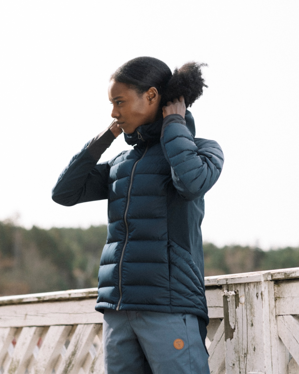 Ermet er strammere rundt håndleddene for å forhindre varmetap, og hetten uten dun har strammesnor i front og borrelåsfeste bak. Nedre kant av jakken kan justeres med snorer og snorlås på hver side for en tettere passform. To lommer i front med YKK-glidelåser vil bevare eiendelene dine trygt, slik at du kan fokusere på andre utfordringer og den vakre naturen rundt deg. Hovedstoffet inneholder RDS-sertifisert dun fra grågås og er varmende, mens resten av jakken er uten dun for bedre bevegelighet og lufttilførsel.