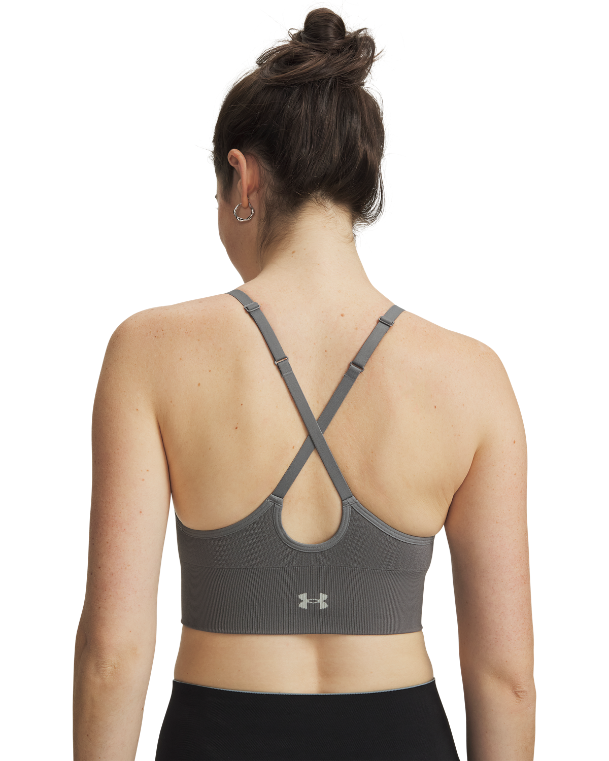 Den perfekte BH-en for lavintensive aktiviteter, med lengre snitt og sømløs passform. UA Vanish er lett, ekstra elastisk, pustende og hurtigtørkende – slik at du kan yte maks uten å bli tynget ned.
