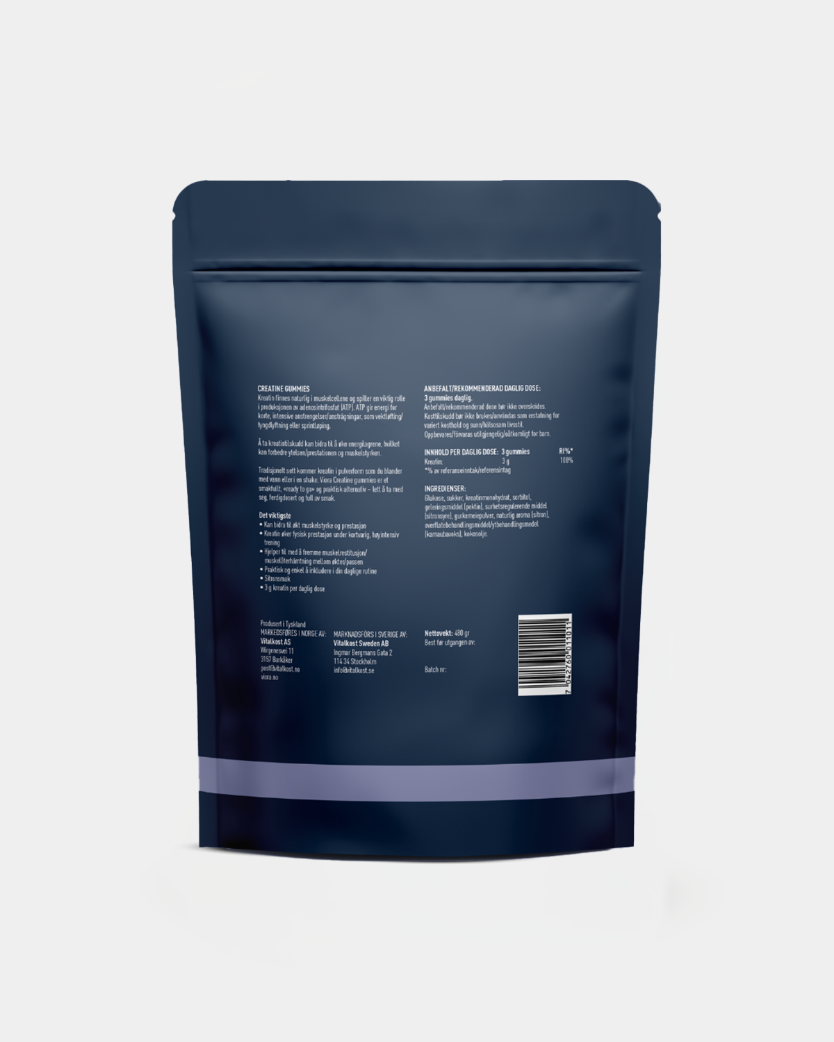 Viora Creatine gummies er et smakfullt, «ready to go» og praktisk alternativ – lett å ta med seg, ferdigdosert og full av smak. 3 gr kreatin per daglig dose med en naturlig, frisk sitronsmak og naturlig farge fra gurkemeie.