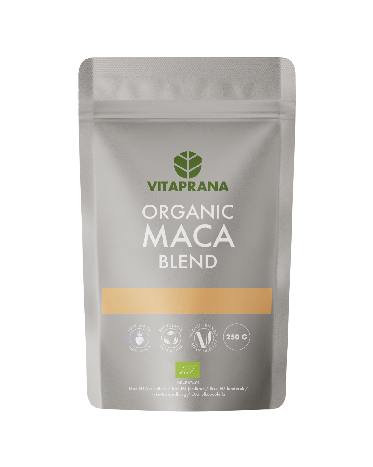 Maka finnes i flere forskjellige former og alle har blitt brukt og spist i lang tid i Sør-Amerika. Organic Maca Blend fra Vitaprana kombinerer gul, svart og rød maka til et smakfullt pulver slik at du får mulighet til å nyte av hele spekteret av den makaen som faktisk dyrkes.