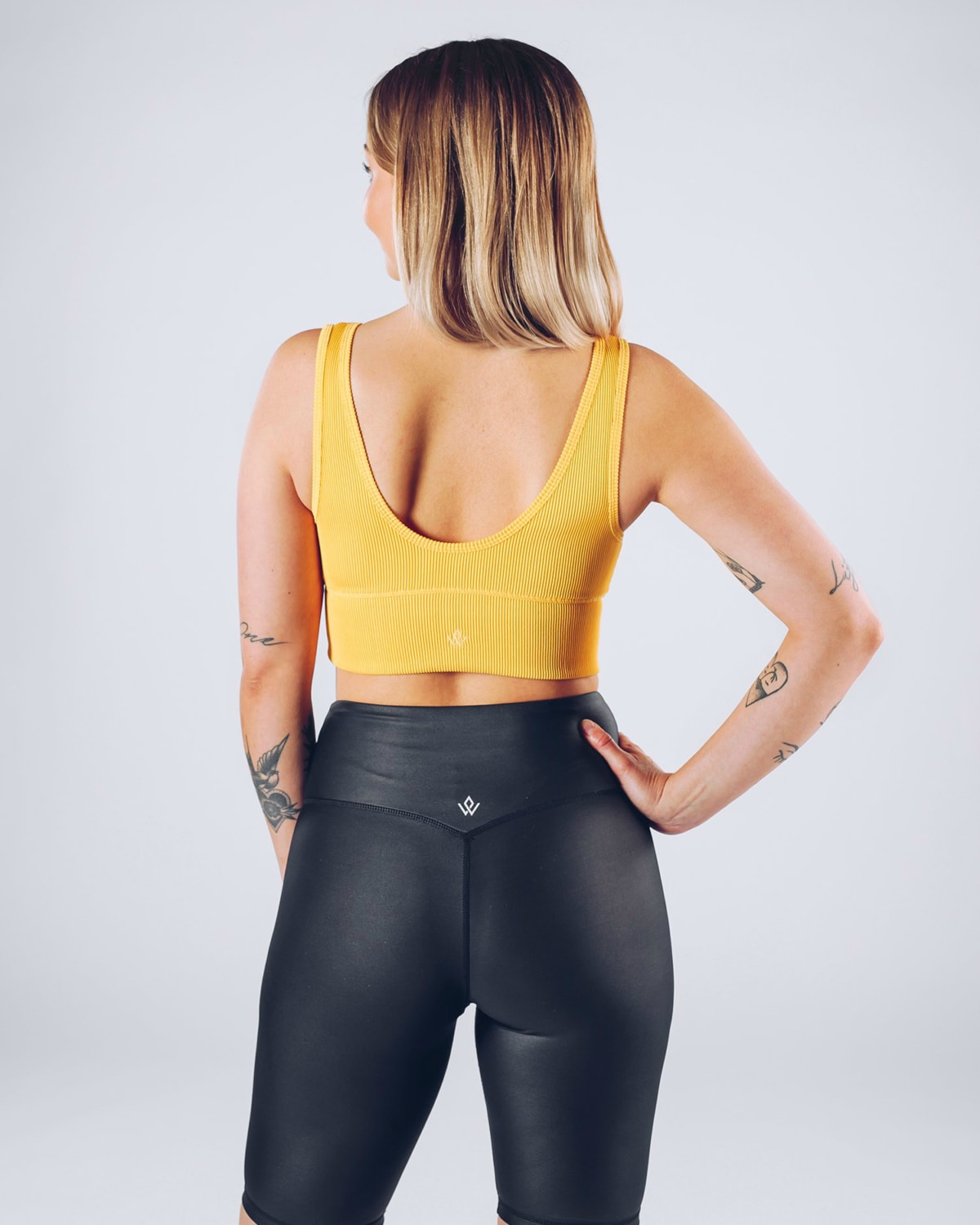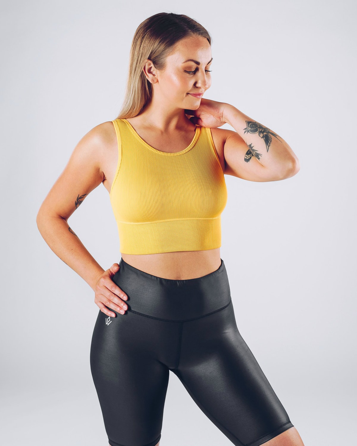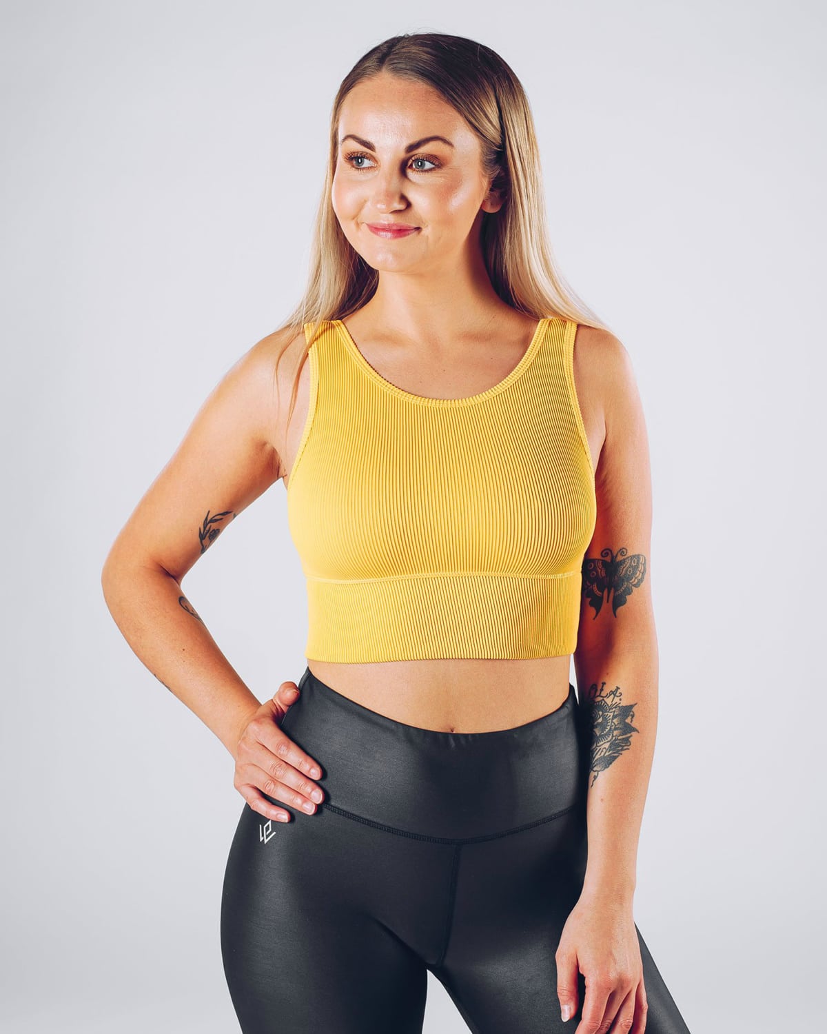 Denne spreke treningstoppen er produsert med ribbet materiale. Den er egnet til svette treningsøkter, men også for at kundene skal ha muligheten til å bruke den i hverdagen også.