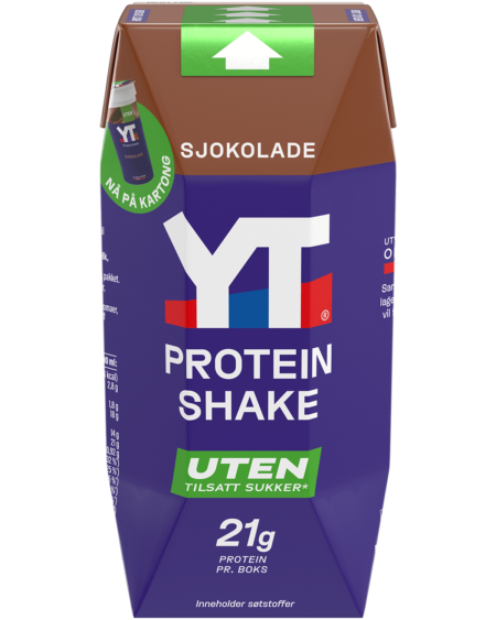 YT® Proteinshake får du nå på kartong med 70 % mindre plast enn i vår forrige emballasje.