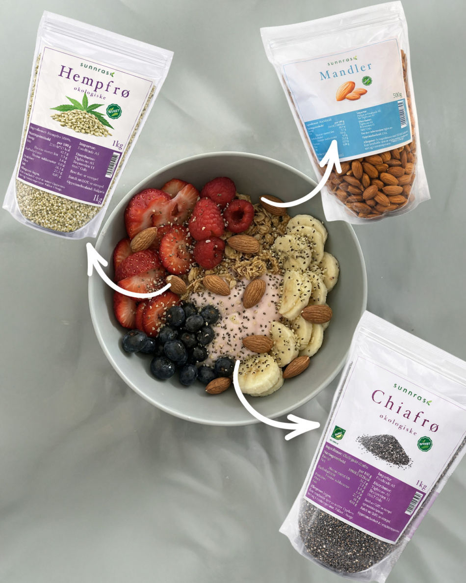 - Dryss over chiafrø og hempfrø for ekstra protein og næring 💪
